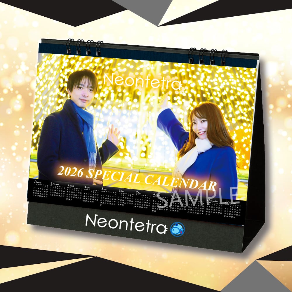 卓上カレンダーは毎年こだわりの、2025年のNeontetraの活動がぎっしりつまった活動履歴カレンダーです!2026年はこの活動を超えていけるよう頑張ります!という思いと、カレンダー用の撮りおろし写真も満載!